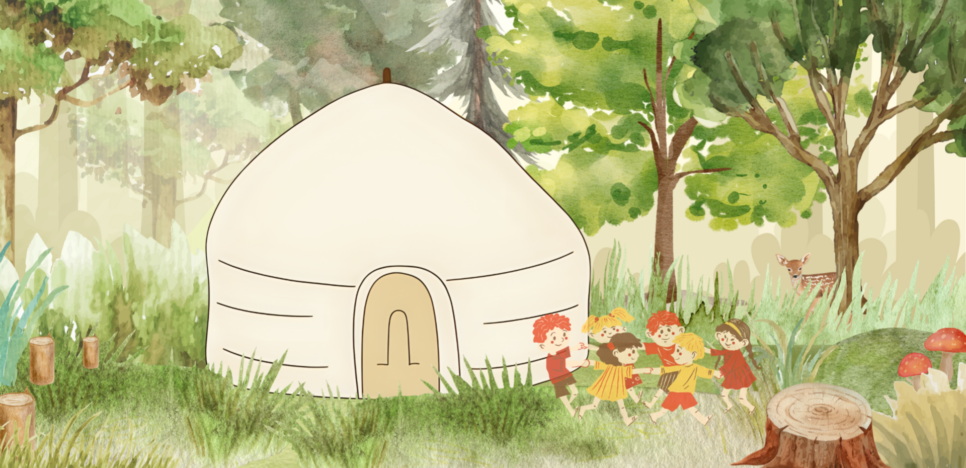 V jurtíku děti přirozeně vnímají oba jazyky – češtinu i angličtinu – skrze každodenní situace, hru a komunikaci s průvodci. Jazyk se tak stává živou součástí dne, ne učením "u stolu". Děti rozumí, napodobují, mluví, zpívají a reagují bez stresu a s radostí.